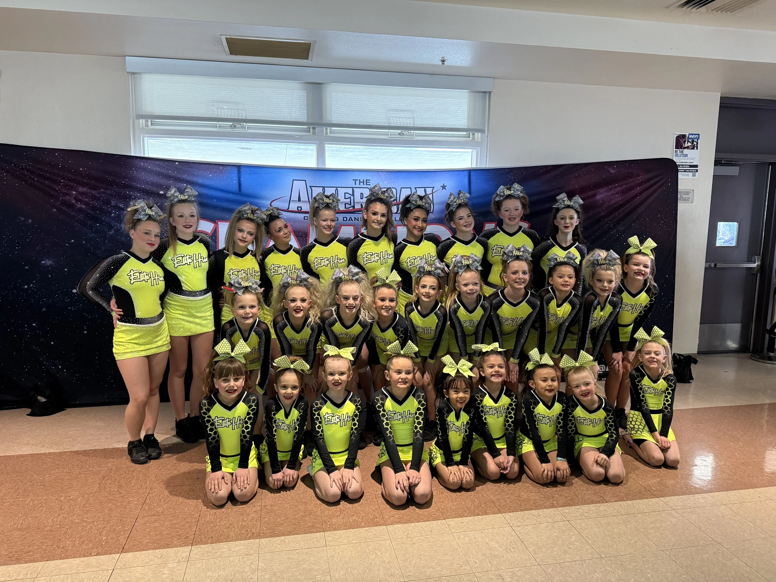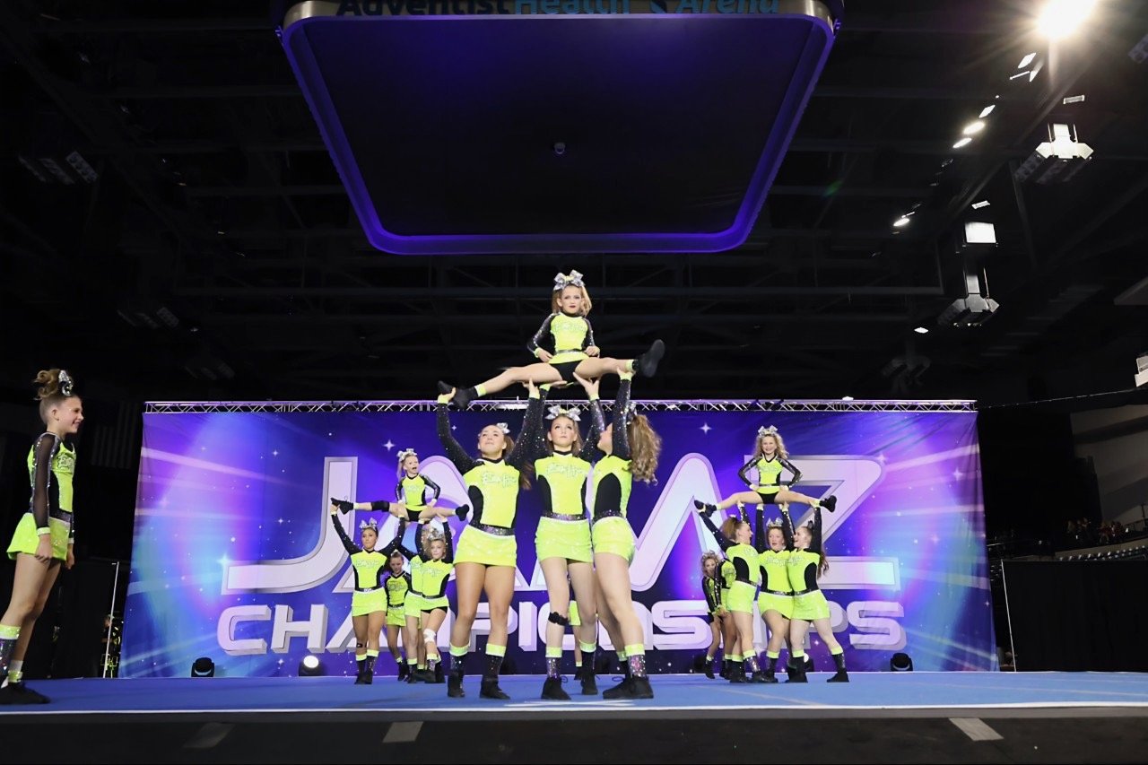 Ages: 5–12Athletes on this team will travel to 4–5 competitions throughout the year (May–March). They will perform a 2 minute and 30 second routine featuring basic tumbling, stunting, and dance.